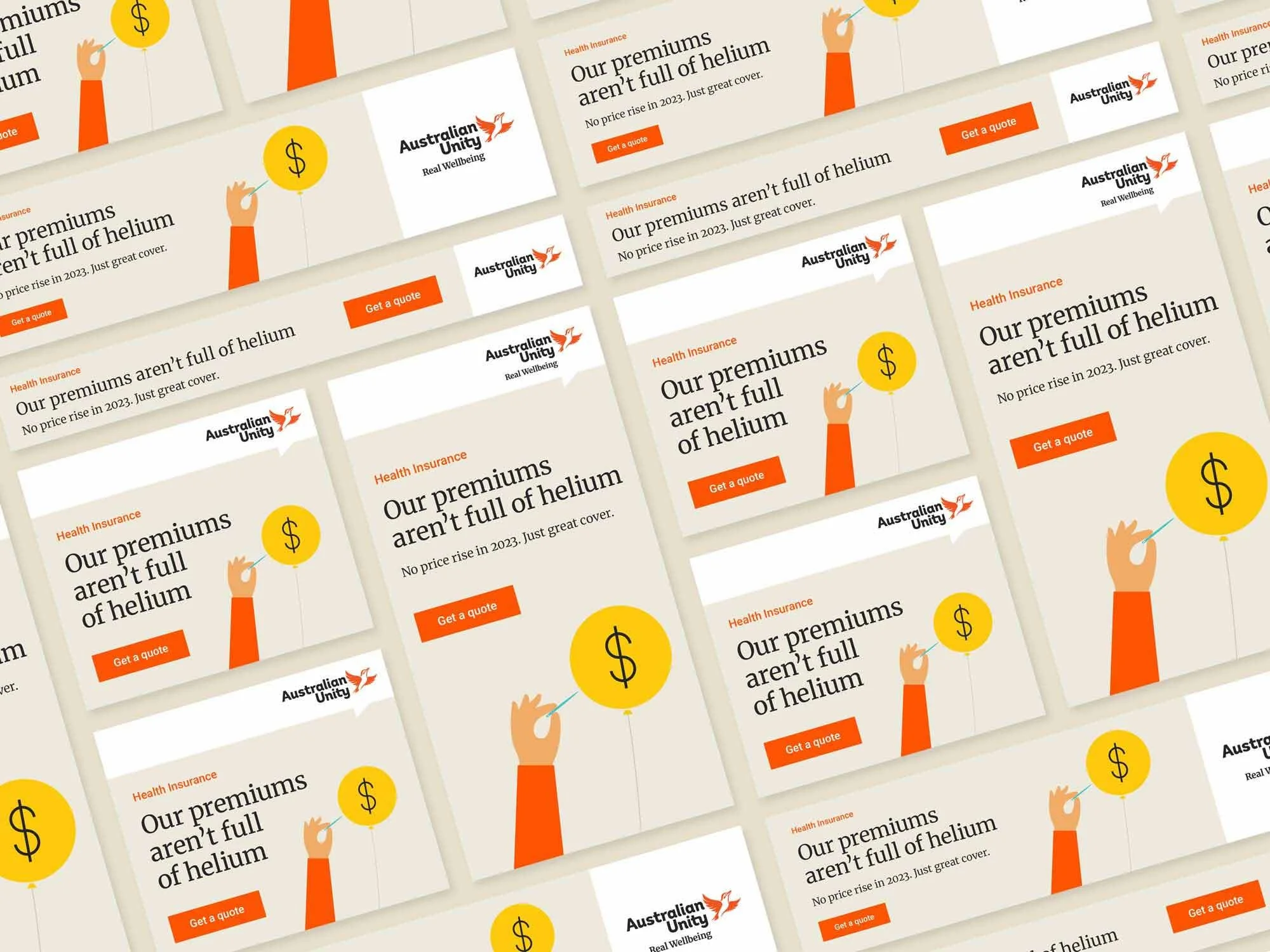 The cherry on top? It’s not just about creativity; it’s a tag-team effort. After we’ve nailed the campaign creative, we pass the baton to Australian Unity’s internal creative team. This not only assists our marketing buddies in keeping their budgets in check but also grants them the freedom to orchestrate the rollout in-house, using the assets for endless possibilities.